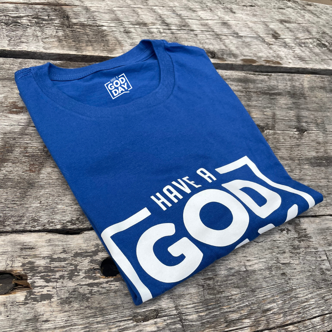 Faith & Trust- Each of our HAGD colors highlights an emotion. This comfortable blue soft cotton Tee is from our Bold Color Collection. Wearing this blue Tee symbolizes hope and encouragement, and it says, " I stand in firm faith in God."
